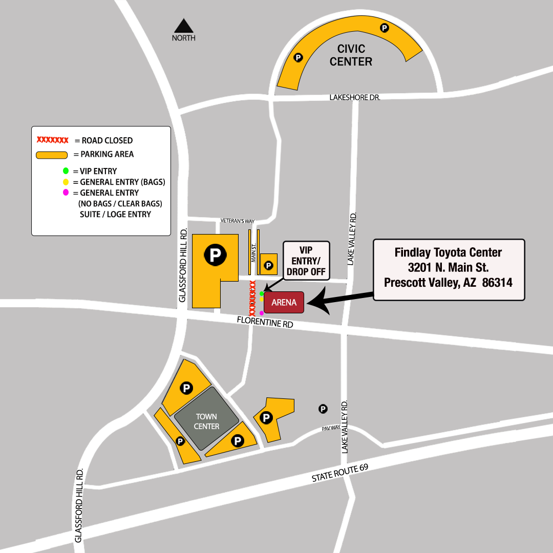 - Please carpool and arrive early to allow time to find parking. This event is SOLD OUT and the arena lots will fill up quickly.